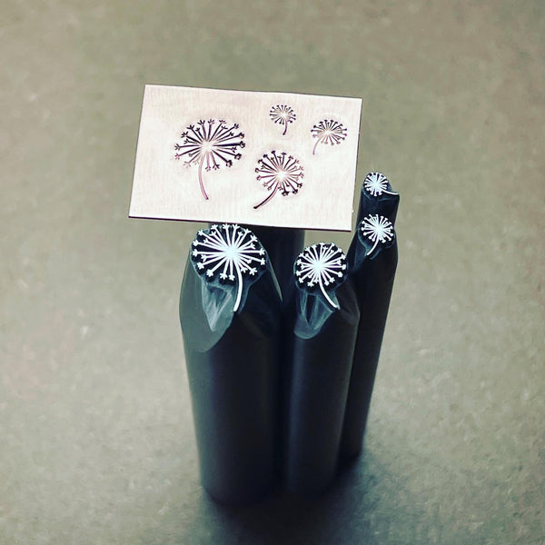 Dandelions! These are made specifically to pair with Roberta Pihl's Oregon Trail Silver Dandelion Delight impression plate. With her permission, of course. 🙂 (Thank you!)