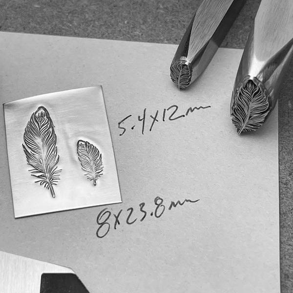 Fine Feather! Two sizes available Metal Hand Stamp.