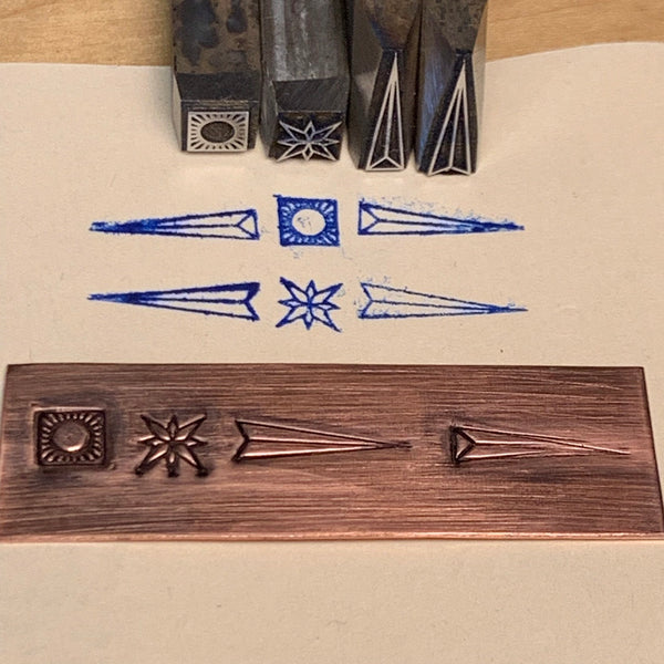 Fine Accents. Arrows, Boxed Circle, Star. Engraved Metal Hand Stamp.