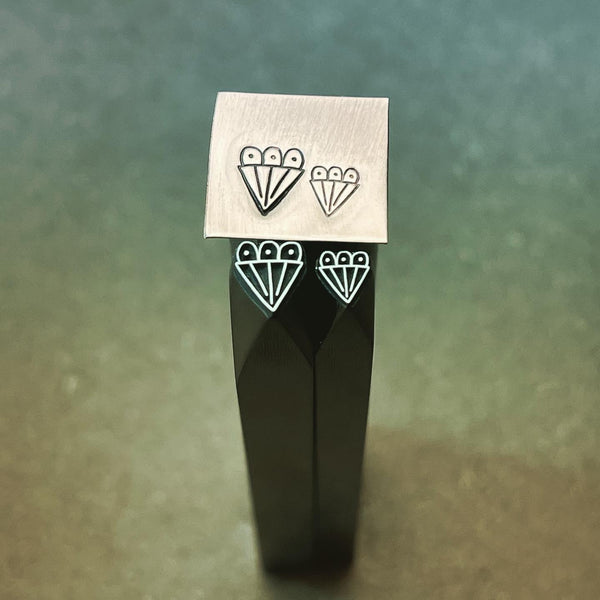 Unique and versatile flourish design metal stamp. Use alone or as a border. This pairs well with my other petal stamps. Petal V. This is a redesign of a legacy stamp, made many moons ago and still available for now in another listing.