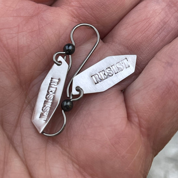 RESIST stamp. Bold font. Bold statement. Stencil type font.